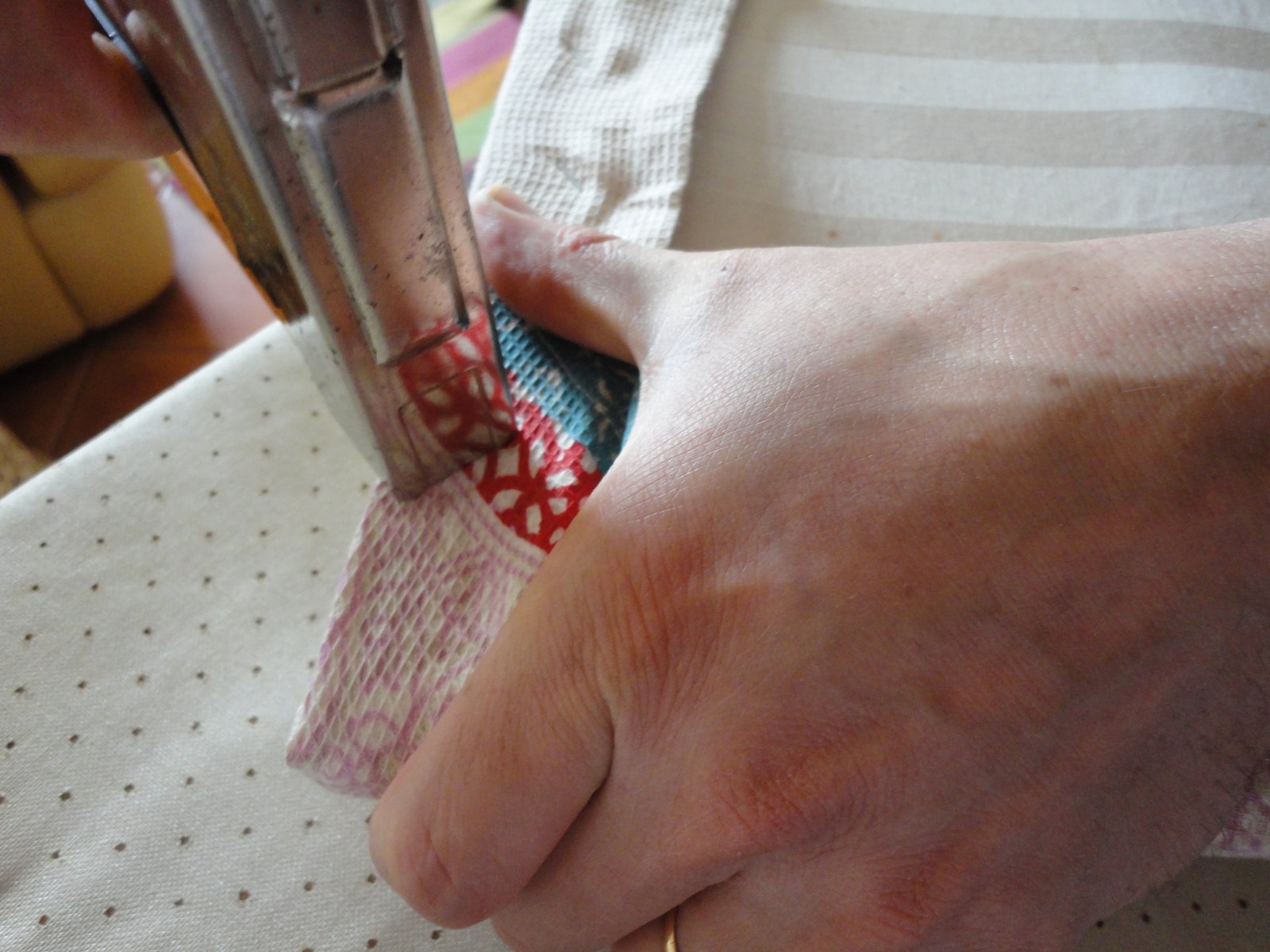 Não sei se já vos disse que não percebo nada de costura e nunca toquei numa maquina de costura.Mas pensei vou tentar fazer isto á mão.