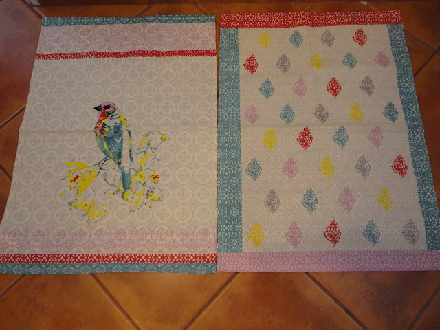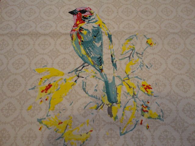 Adorei este pássaro bordado no pano ,achei que ficaria bem em substituição do pano rosa riscado.~